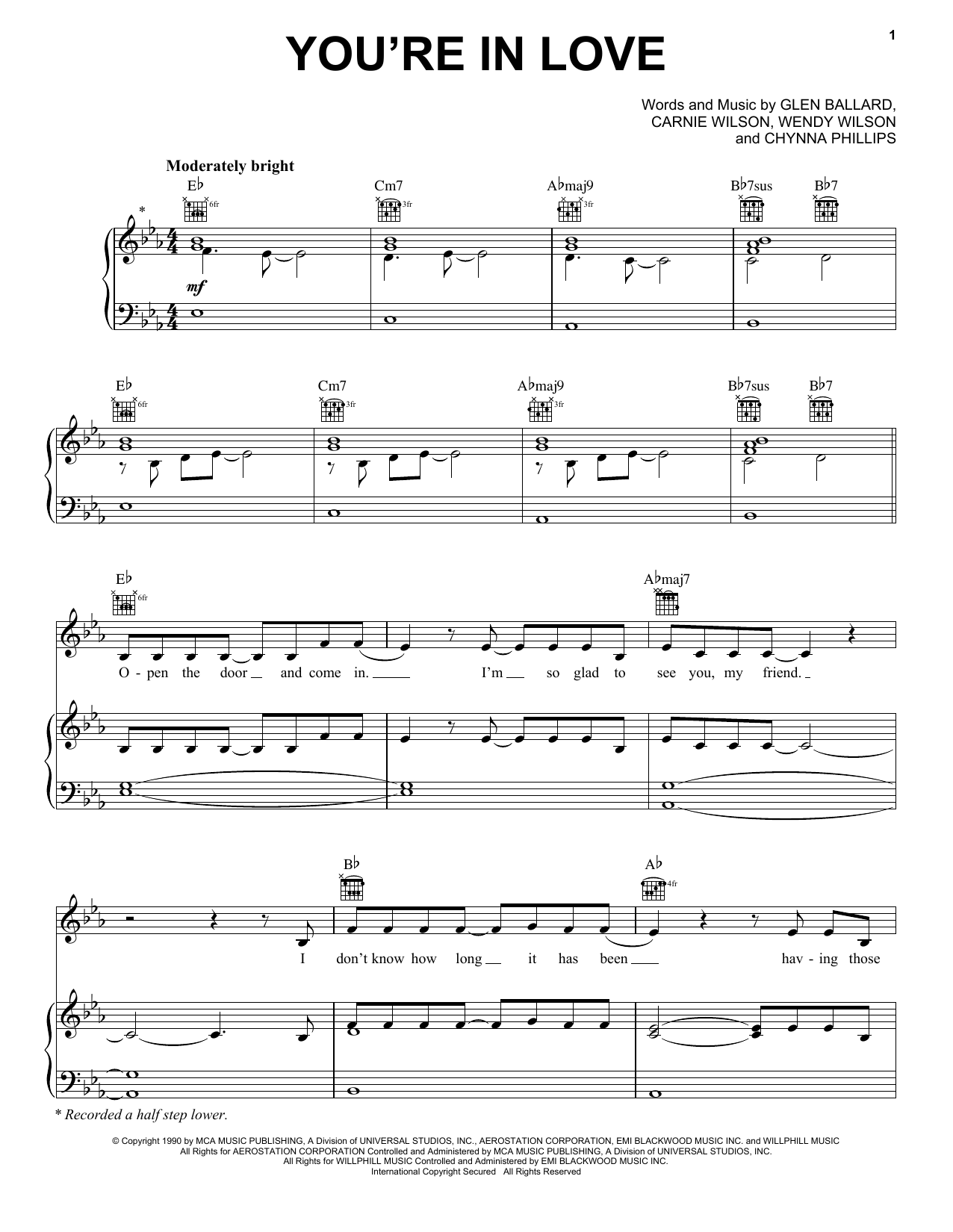 Download or print Wilson Phillips You're In Love sheet music, chords and digital score arranged for Piano, Vocal & Guitar Chords (Right-Hand Melody). This Pop score includes 7 page(s).