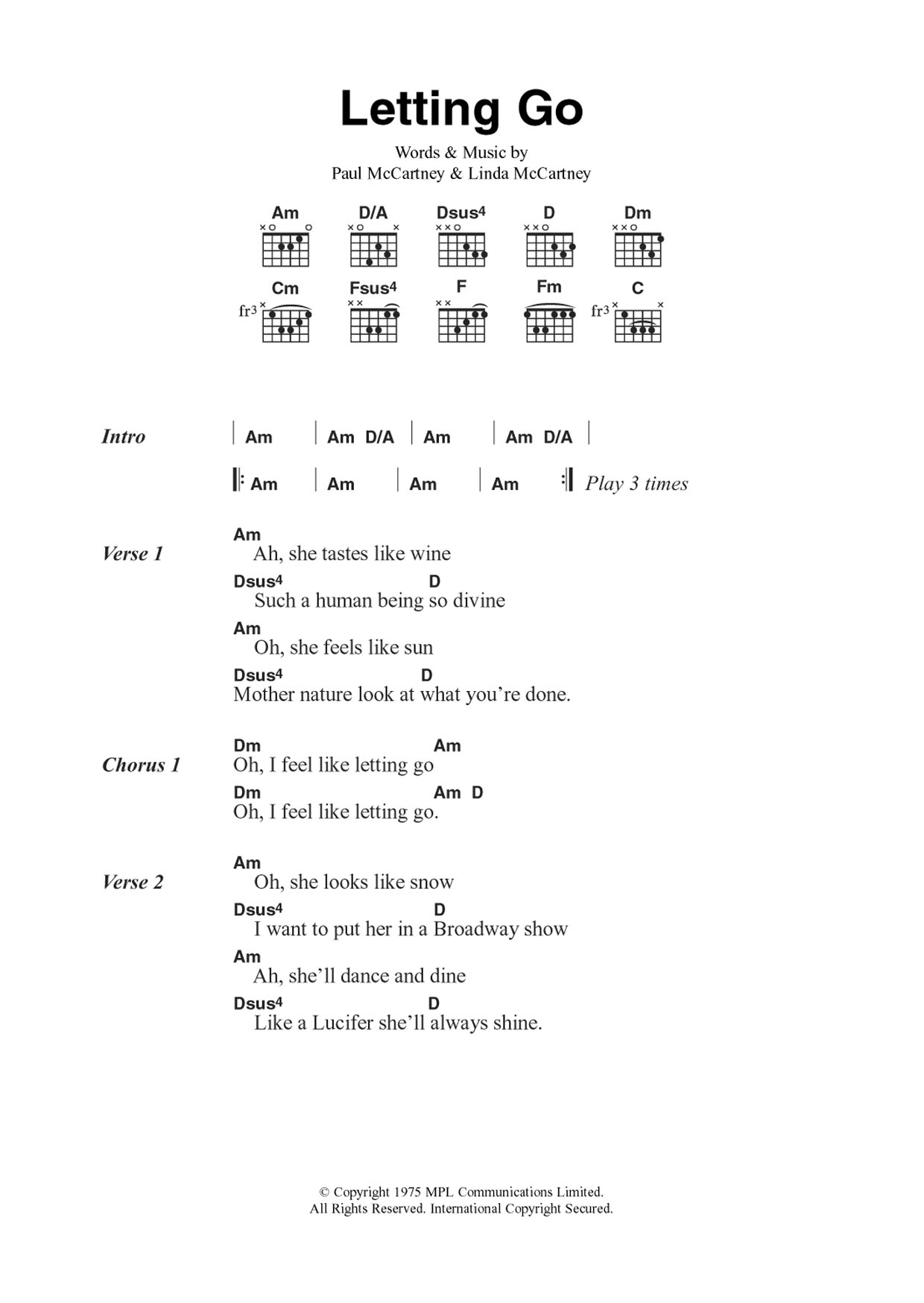 Download or print Wings Letting Go sheet music, chords and digital score arranged for Guitar Chords/Lyrics. This Pop score includes 2 page(s).