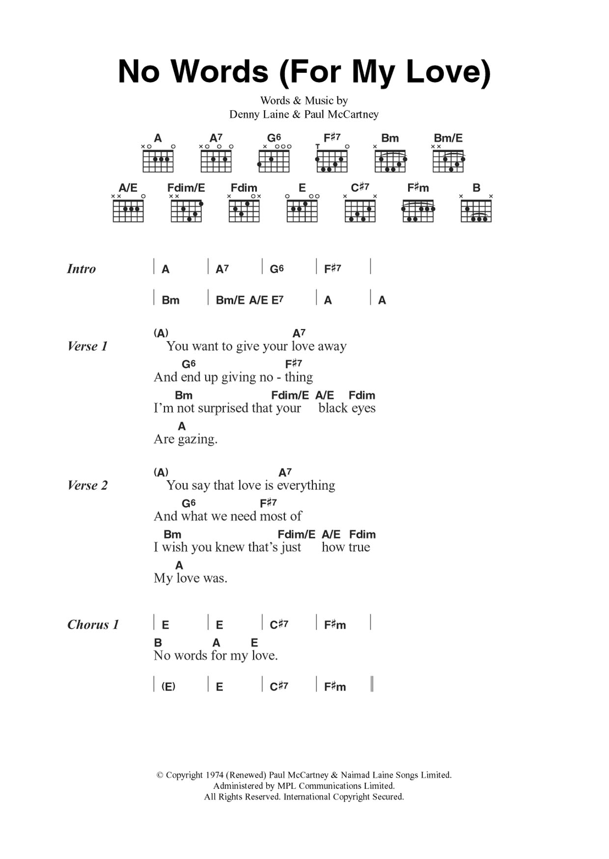 Download or print Wings No Words (For My Love) sheet music, chords and digital score arranged for Guitar Chords/Lyrics. This Pop score includes 2 page(s).