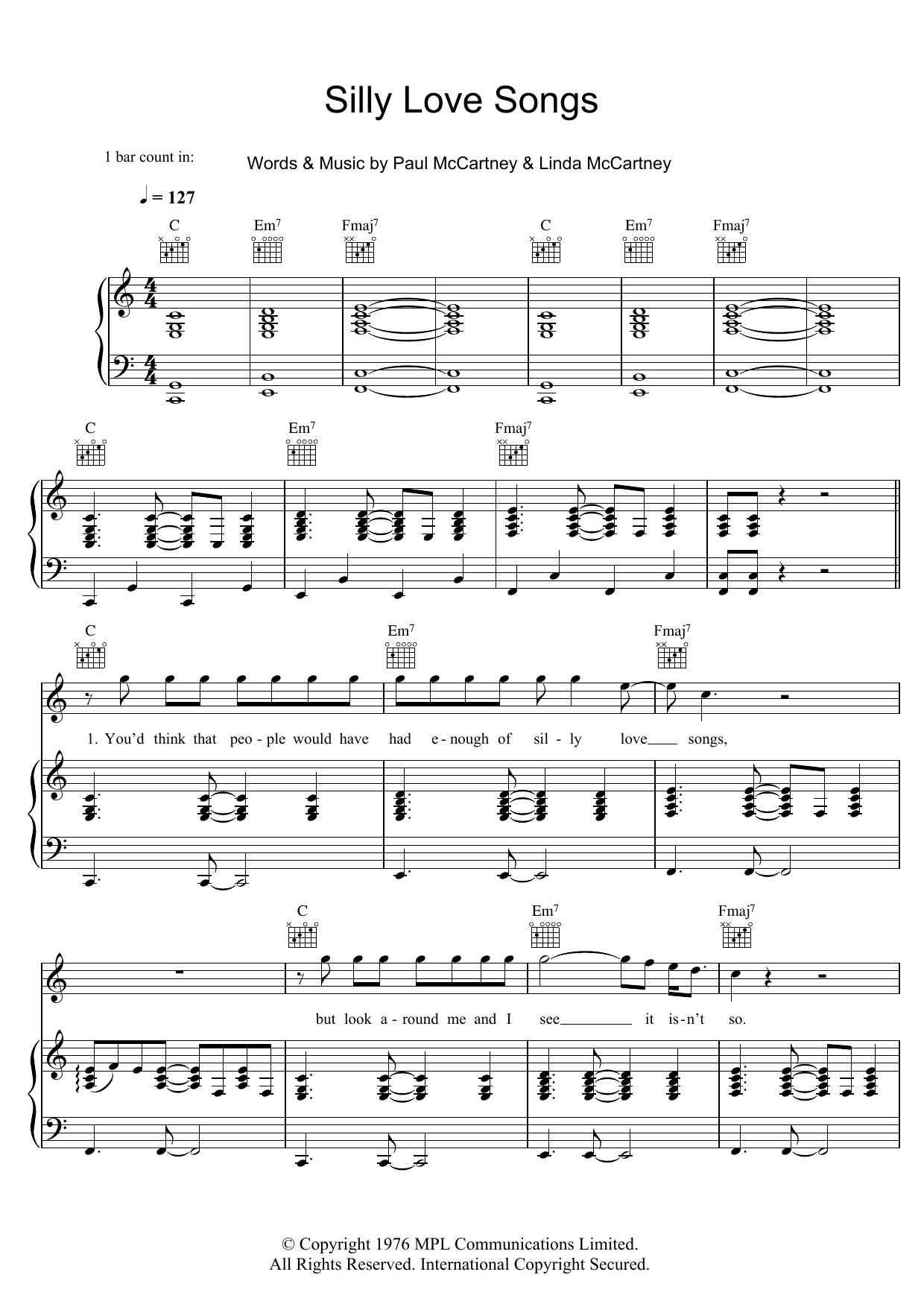 Quick facts Silly Love Songs about digital sheet music