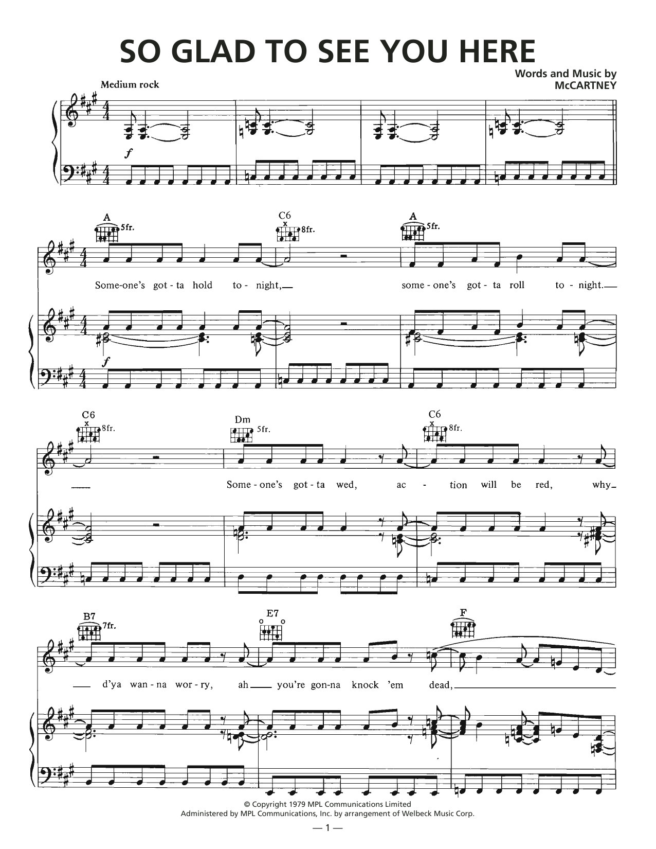 This composition is beautifuly arranged for Piano, Vocal & Guitar Chords (Right-Hand Melody) includes 8 page(s). It is performed by Wings. The style of the score is 'Pop'. Catalog SKU number of the notation is 484267.