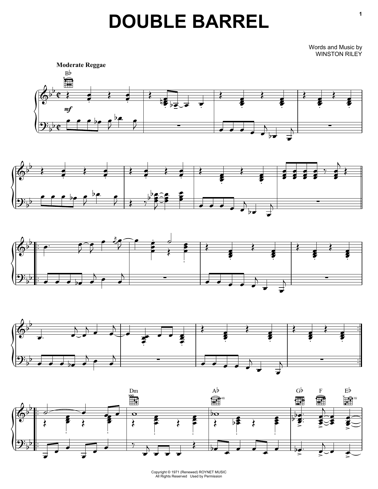 Download or print Winston Riley Double Barrel sheet music, chords and digital score arranged for Piano, Vocal & Guitar Chords (Right-Hand Melody). This Reggae score includes 3 page(s).