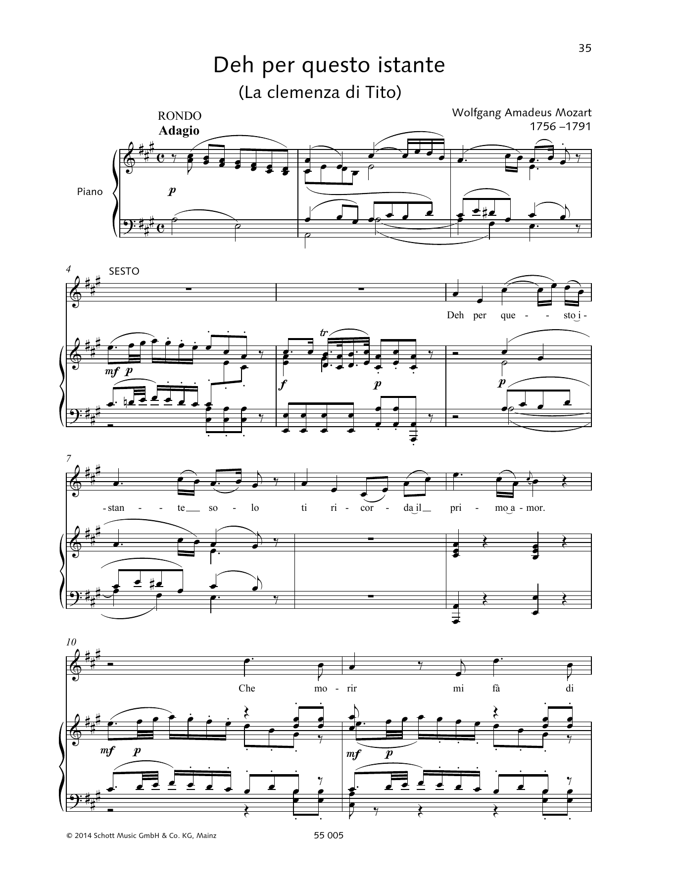 Download or print Wolfgang Amadeus Mozart Deh per questo istante sheet music, chords and digital score arranged for Piano & Vocal. This Classical score includes 11 page(s).