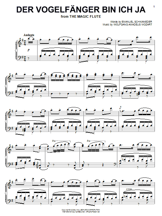 Download or print Wolfgang Amadeus Mozart Der Vogelfanger Bin Ich Ja sheet music, chords and digital score arranged for Piano & Vocal. This Classical score includes 2 page(s).
