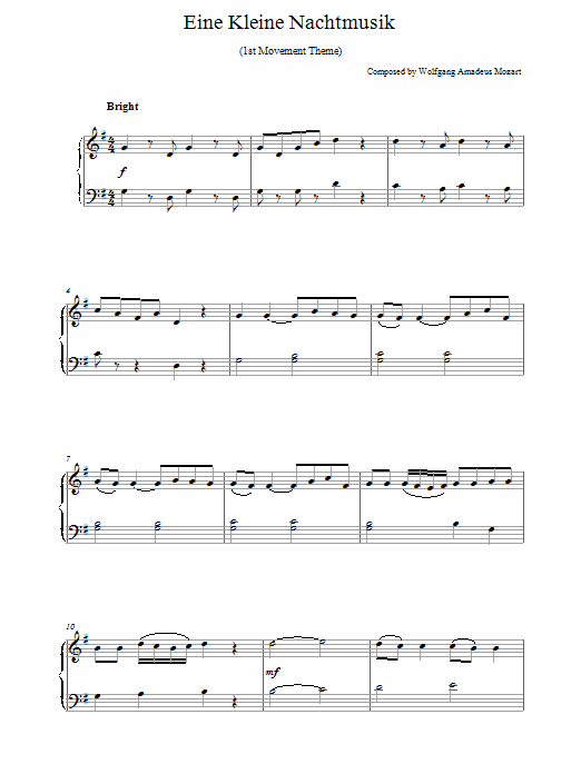Download or print Wolfgang Amadeus Mozart Eine Kleine Nachtmusik sheet music, chords and digital score arranged for Easy Piano. This Classical score includes 4 page(s).