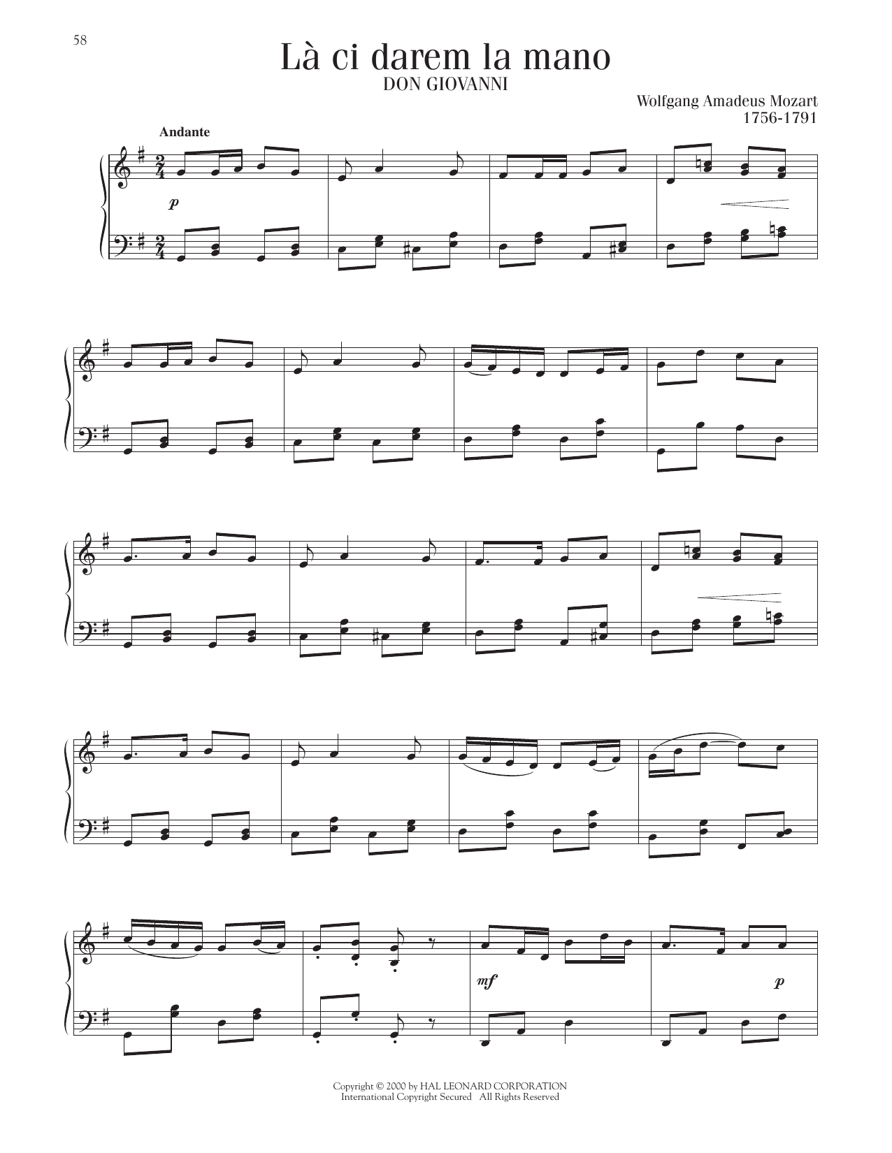 Quick facts La, Ci Darem La Mano (from Don Giovanni) about digital sheet music