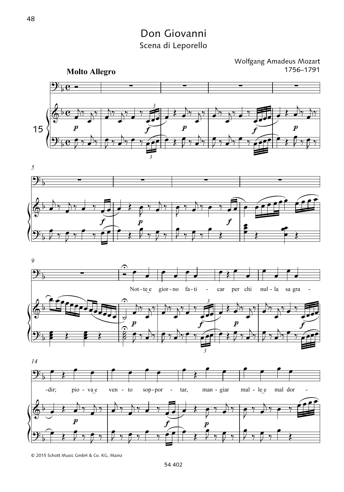 Download or print Wolfgang Amadeus Mozart Notte e giorno faticar sheet music, chords and digital score arranged for Piano & Vocal. This Classical score includes 4 page(s).