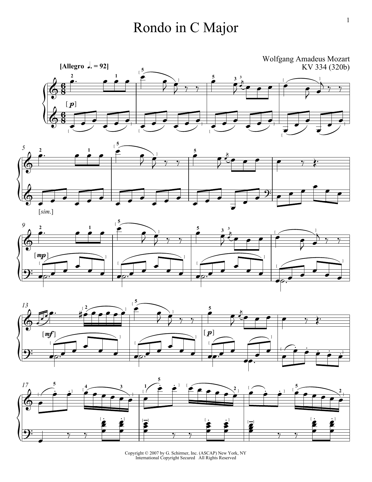 Quick facts Rondo In C Major about digital sheet music
