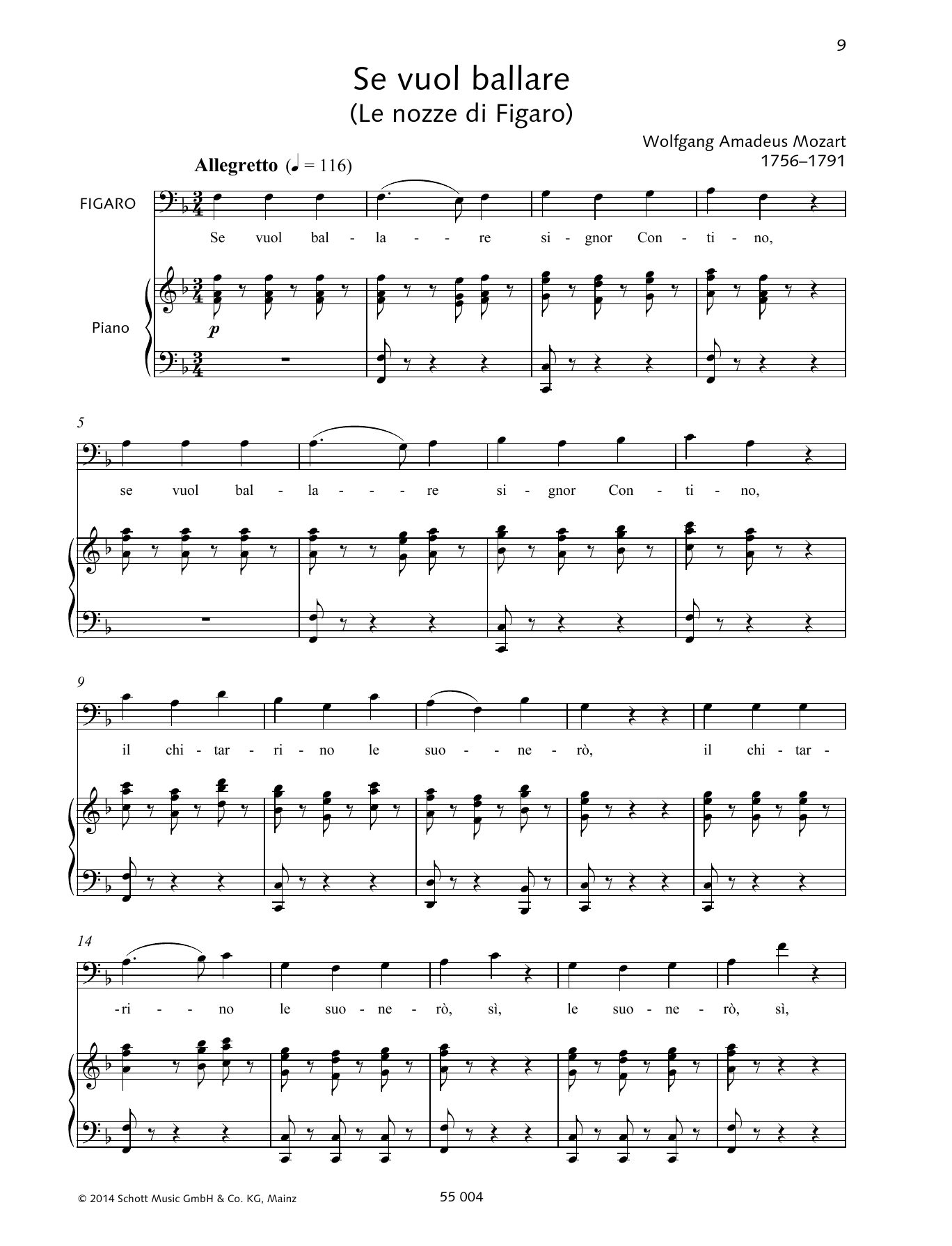 Download or print Wolfgang Amadeus Mozart Se vuol ballare sheet music, chords and digital score arranged for Piano & Vocal. This Classical score includes 7 page(s).