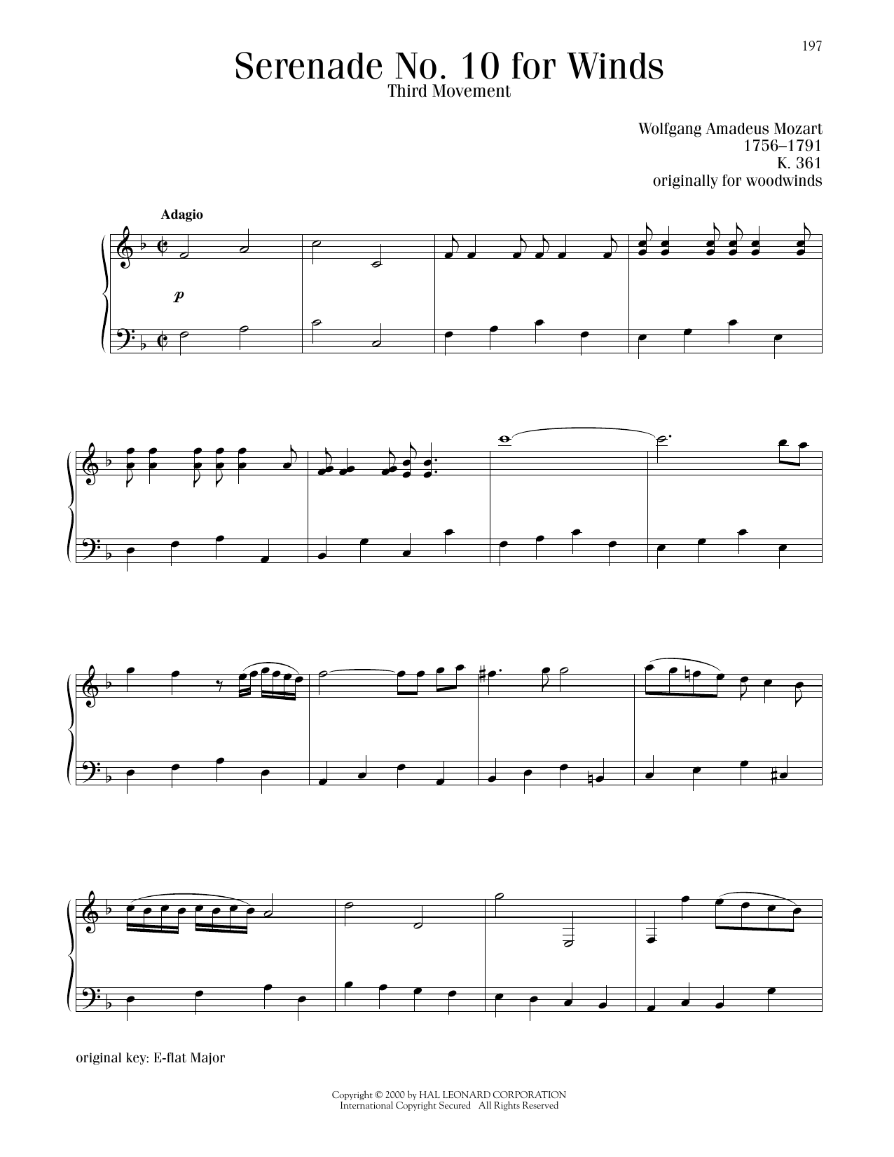 Download or print Wolfgang Amadeus Mozart Serenade No. 10 For Winds, Third Movement sheet music, chords and digital score arranged for Piano Solo. This Classical score includes 5 page(s).