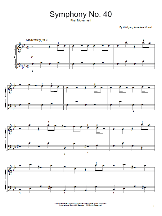 Download or print Wolfgang Amadeus Mozart Symphony No. 40 In G Minor, First Movement Excerpt sheet music, chords and digital score arranged for Piano Solo. This Classical score includes 6 page(s).
