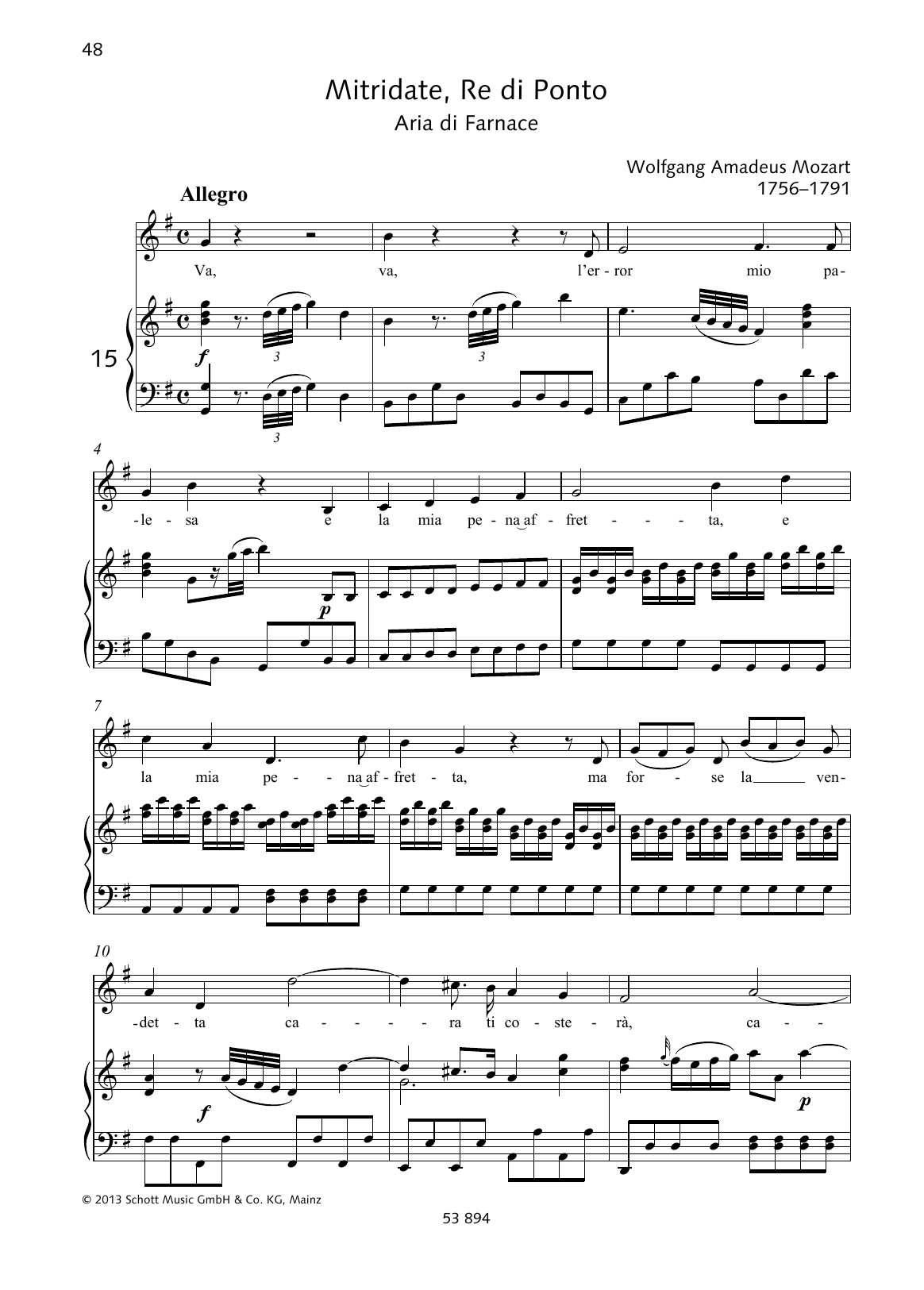 Download or print Wolfgang Amadeus Mozart Va, va, l'error mio palesa sheet music, chords and digital score arranged for Piano & Vocal. This Classical score includes 7 page(s).
