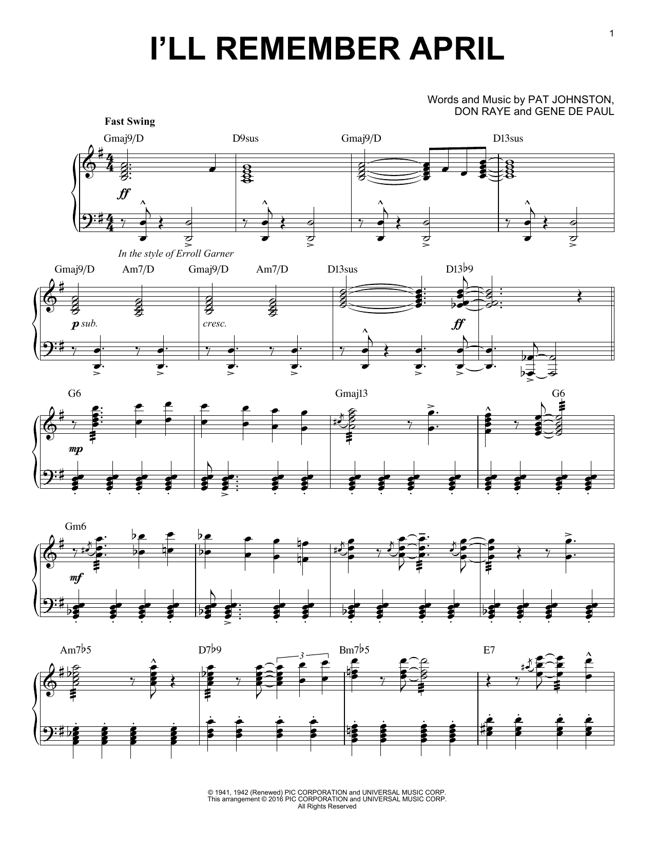 Download or print Woody Herman & His Orchestra I'll Remember April (arr. Brent Edstrom) sheet music, chords and digital score arranged for Piano Solo. This Jazz score includes 5 page(s).