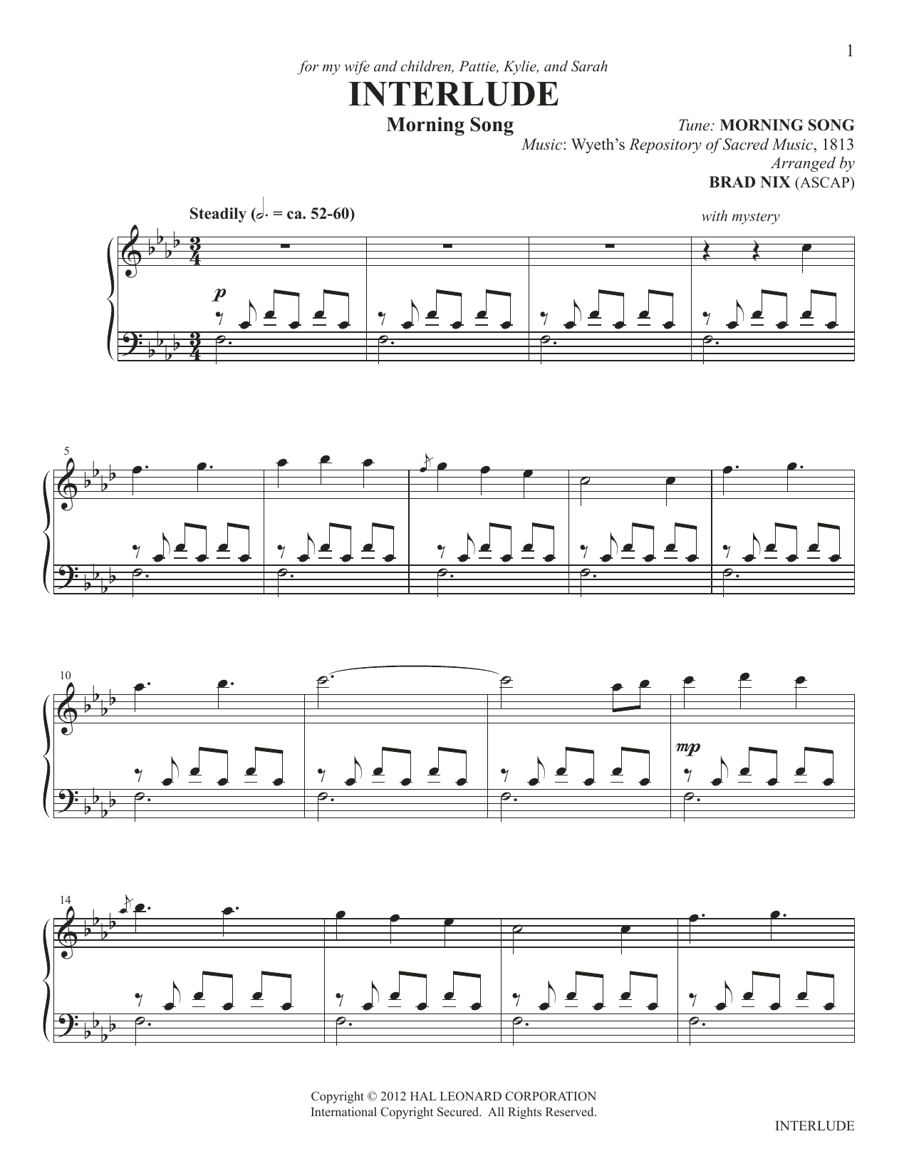 Download or print Wyeth's Repository of Sacred Interlude (arr. Brad Nix) sheet music, chords and digital score arranged for Piano Solo. This Sacred score includes 6 page(s).