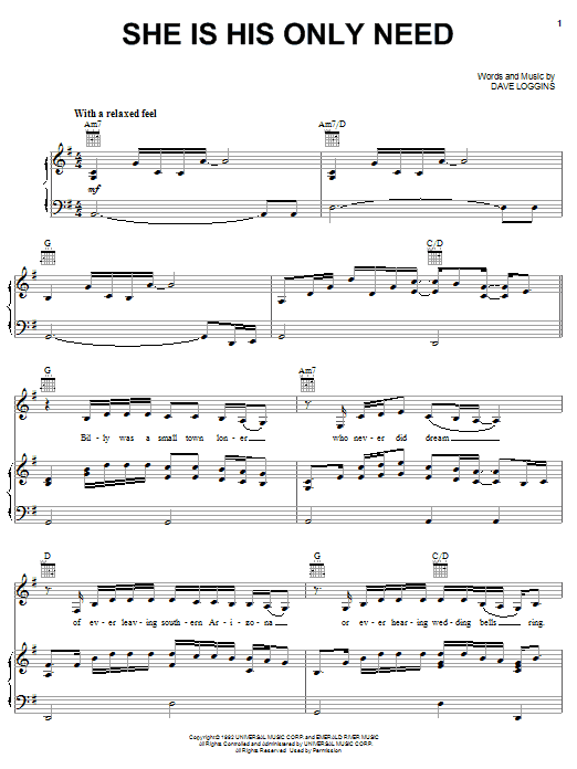 Download or print Wynonna Judd She Is His Only Need sheet music, chords and digital score arranged for Piano, Vocal & Guitar Chords (Right-Hand Melody). This Country score includes 7 page(s).