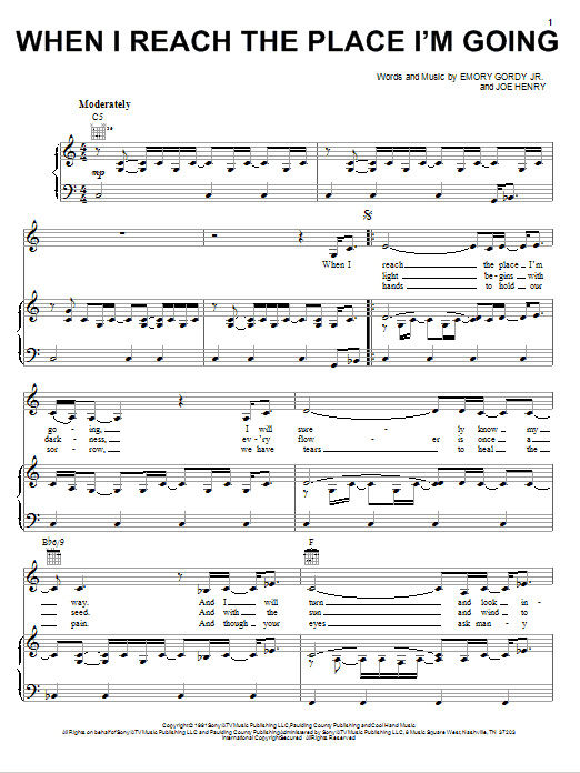 Download or print Wynonna When I Reach The Place I'm Going sheet music, chords and digital score arranged for Piano, Vocal & Guitar Chords (Right-Hand Melody). This Country score includes 4 page(s).