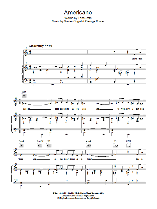 Download or print Xavier Cugat Americano sheet music, chords and digital score arranged for Piano, Vocal & Guitar Chords. This Standards score includes 3 page(s).