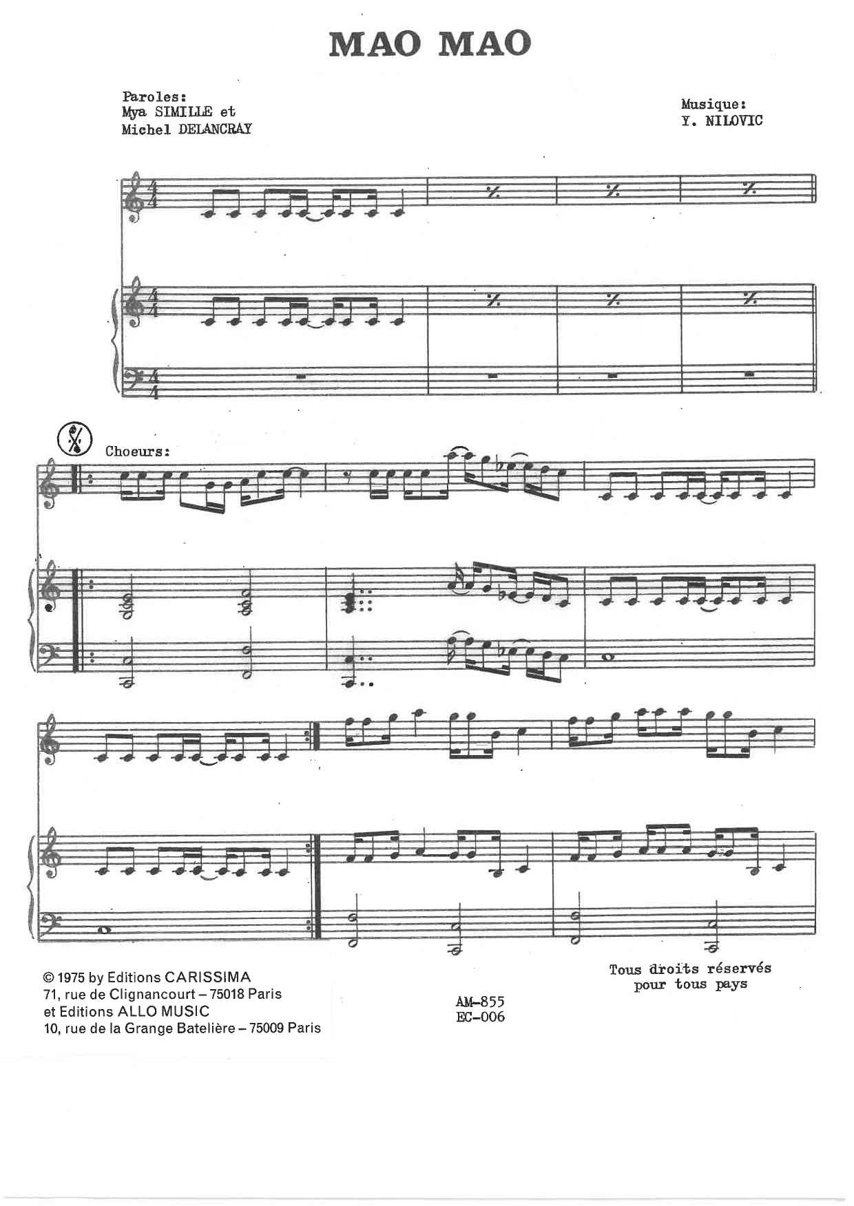 Download or print Y. Nilovic Mao Mao sheet music, chords and digital score arranged for Piano & Vocal. This Classical score includes 3 page(s).