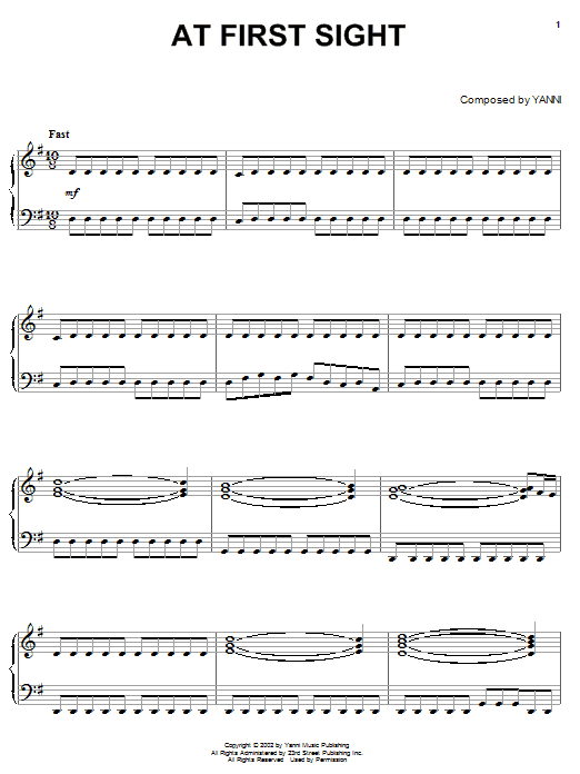 Download or print Yanni At First Sight sheet music, chords and digital score arranged for Piano Solo. This New Age score includes 10 page(s).