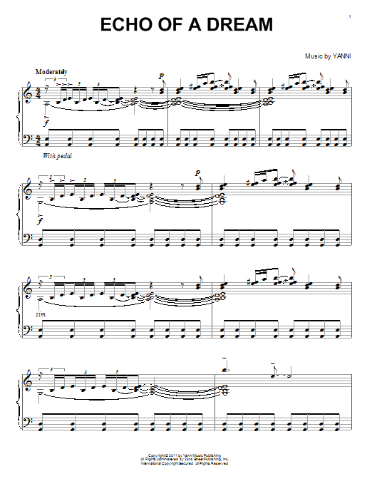 Download or print Yanni Echo Of A Dream sheet music, chords and digital score arranged for Piano Solo. This New Age score includes 6 page(s).