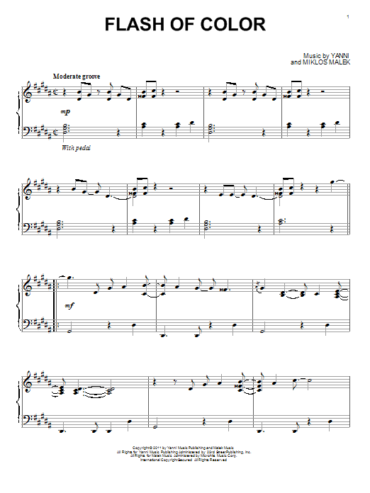 Download or print Yanni Flash Of Color sheet music, chords and digital score arranged for Piano Solo. This New Age score includes 5 page(s).