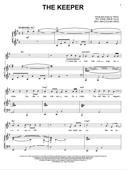 Download or print Yanni The Keeper sheet music, chords and digital score arranged for Piano, Vocal & Guitar Chords (Right-Hand Melody). This New Age score includes 9 page(s).