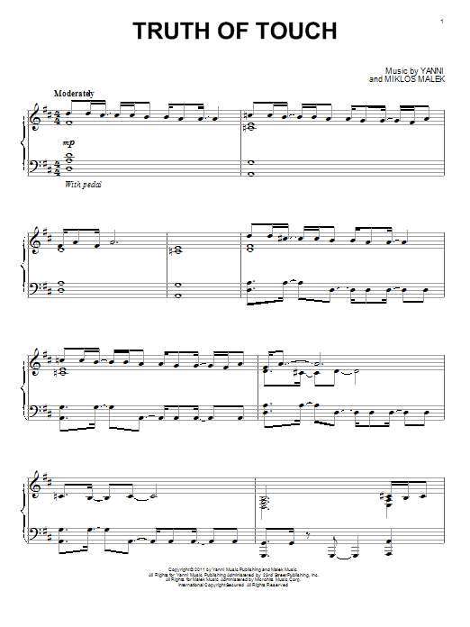 Download or print Yanni Truth Of Touch sheet music, chords and digital score arranged for Piano Solo. This New Age score includes 5 page(s).