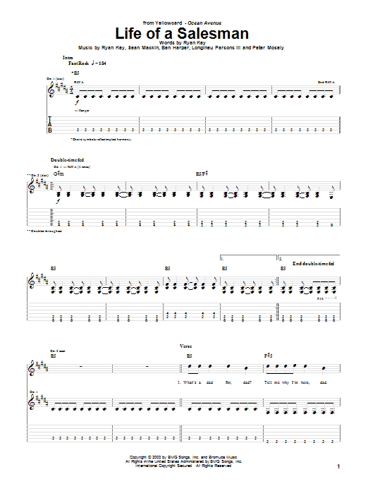 Download or print Yellowcard Life Of A Salesman sheet music, chords and digital score arranged for Guitar Tab. This Pop score includes 10 page(s).