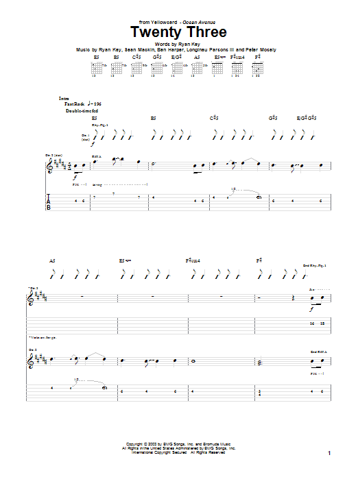 Download or print Yellowcard Twenty Three sheet music, chords and digital score arranged for Guitar Tab. This Pop score includes 10 page(s).