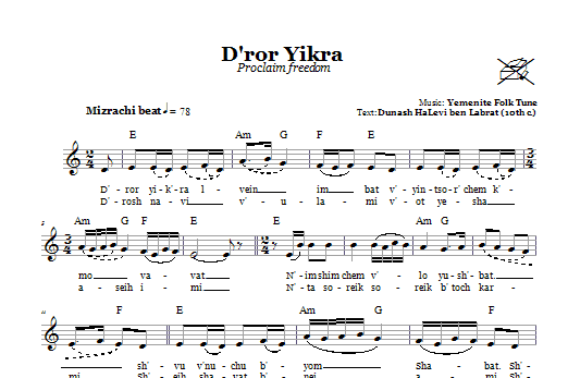 Download or print Yemenite Folk Tune D'ror Yikra (Proclaim Freedom) sheet music, chords and digital score arranged for Lead Sheet / Fake Book. This Traditional score includes 1 page(s).