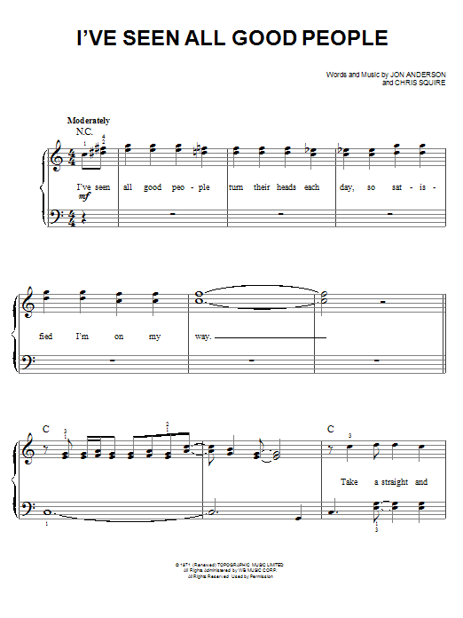 Download or print Yes I've Seen All Good People sheet music, chords and digital score arranged for Easy Piano. This Pop score includes 10 page(s).