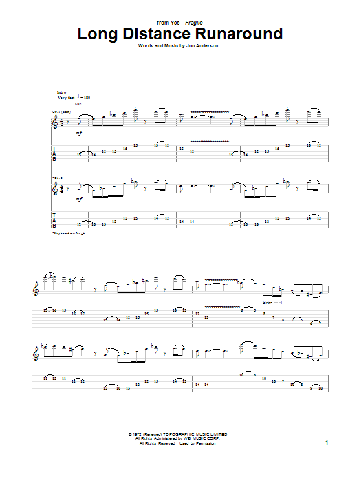 Download or print Yes Long Distance Runaround sheet music, chords and digital score arranged for Guitar Tab. This Pop score includes 11 page(s).