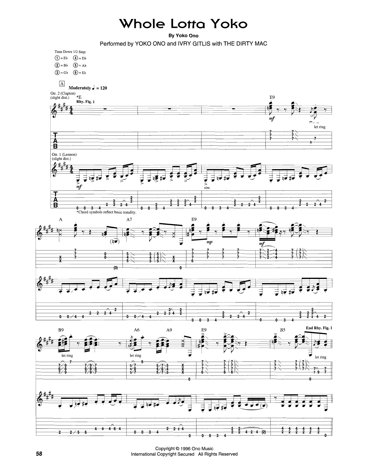 Download or print Yoko Ono Whole Lotta Yoko sheet music, chords and digital score arranged for Guitar Tab. This Rock score includes 10 page(s).