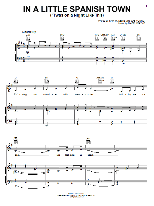 Quick facts In A Little Spanish Town ('Twas On A Night Like This) about digital sheet music