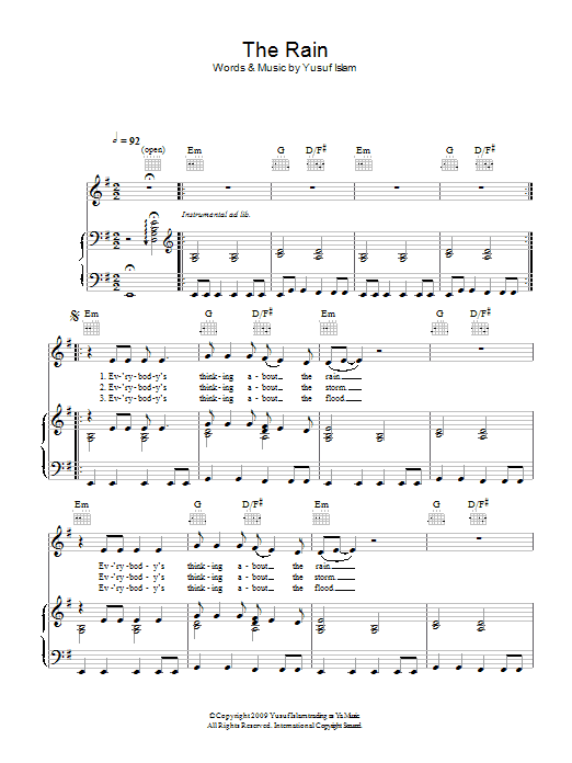Download or print Yusuf Islam The Rain sheet music, chords and digital score arranged for Piano, Vocal & Guitar Chords. This Folk score includes 7 page(s).