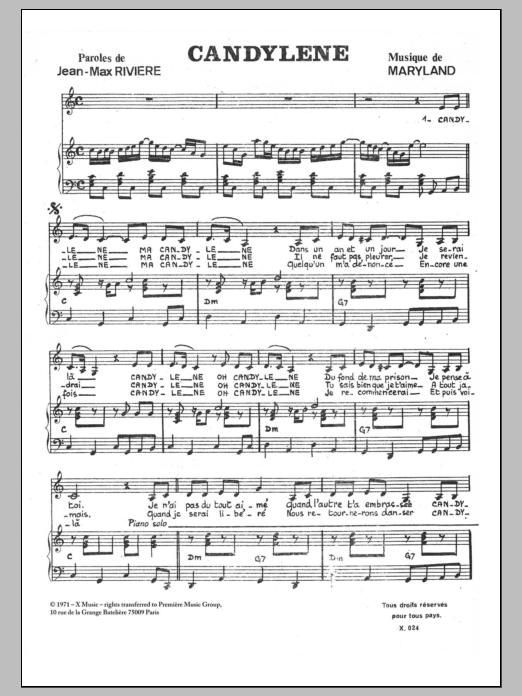 Download or print Yves Heuze Candylene sheet music, chords and digital score arranged for Piano & Vocal. This Pop score includes 2 page(s).