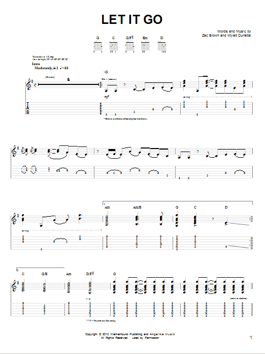 Download or print Zac Brown Band Let It Go sheet music, chords and digital score arranged for Piano, Vocal & Guitar Chords (Right-Hand Melody). This Country score includes 8 page(s).