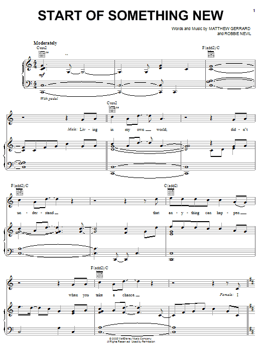Download or print High School Musical Start Of Something New sheet music, chords and digital score arranged for Piano, Vocal & Guitar Chords (Right-Hand Melody). This Children score includes 6 page(s).