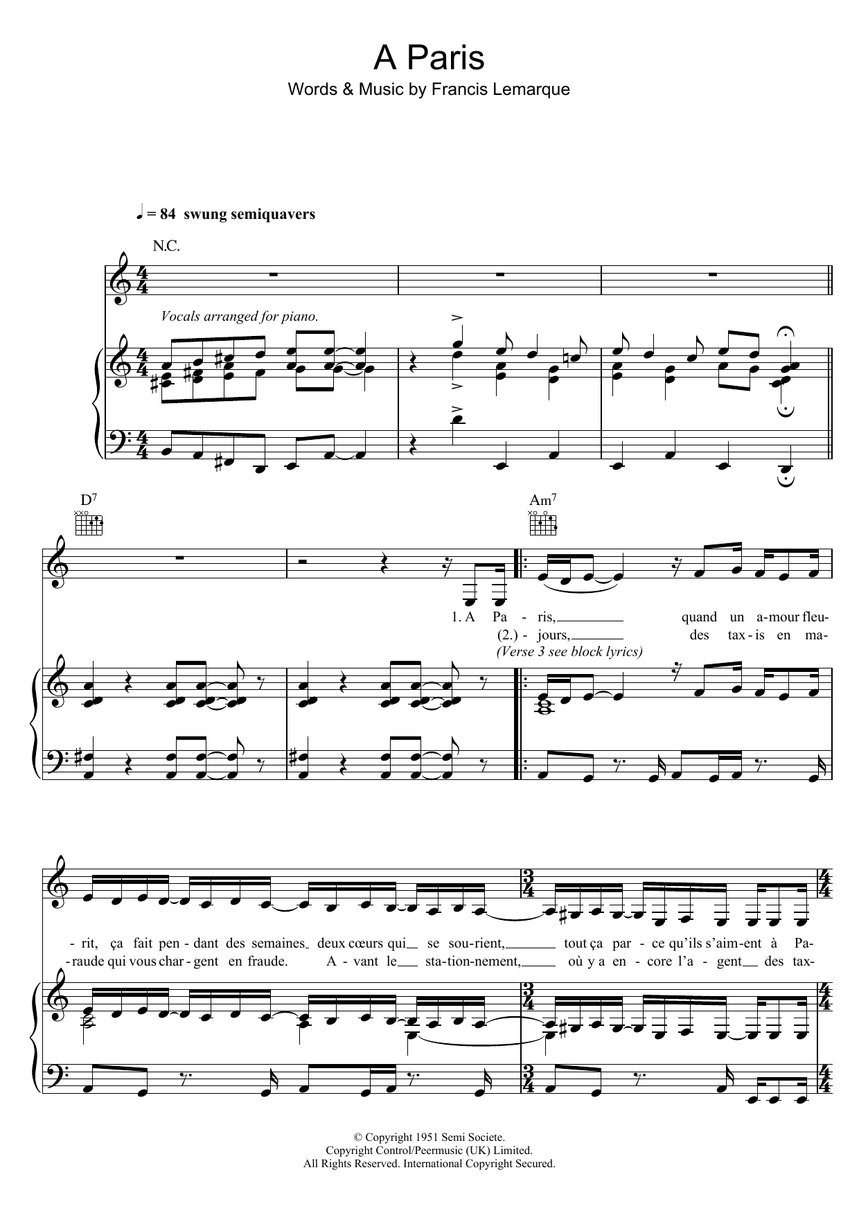 Download or print Zaz A Paris sheet music, chords and digital score arranged for Piano, Vocal & Guitar Chords. This Jazz score includes 5 page(s).