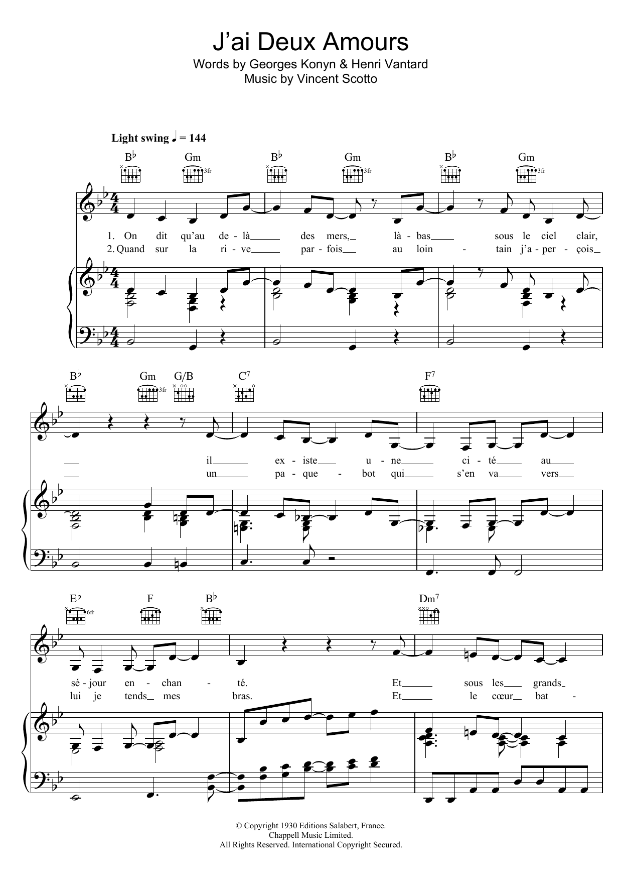 Download or print Zaz J'ai Deux Amours sheet music, chords and digital score arranged for Piano, Vocal & Guitar Chords. This Jazz score includes 4 page(s).