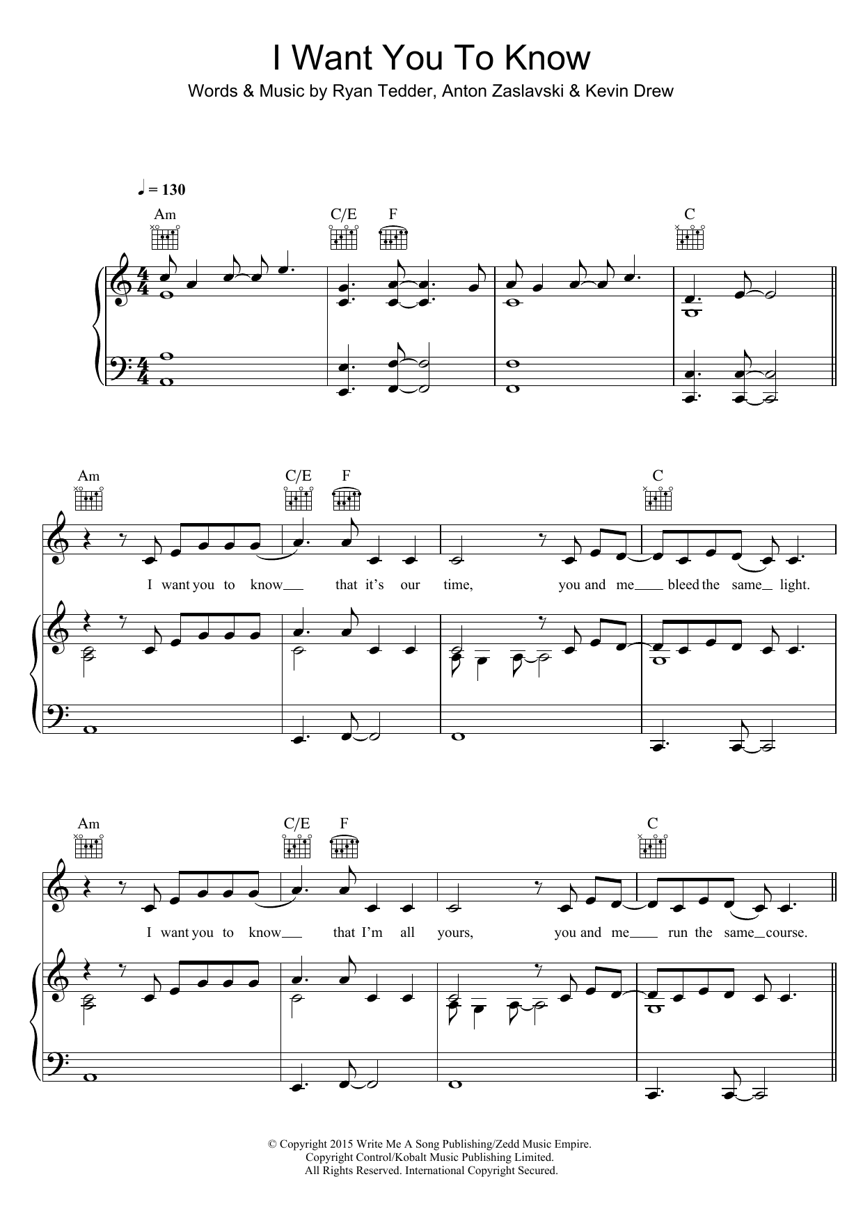 Download or print Zedd I Want You To Know (featuring Selena Gomez) sheet music, chords and digital score arranged for Piano, Vocal & Guitar Chords. This Pop score includes 8 page(s).