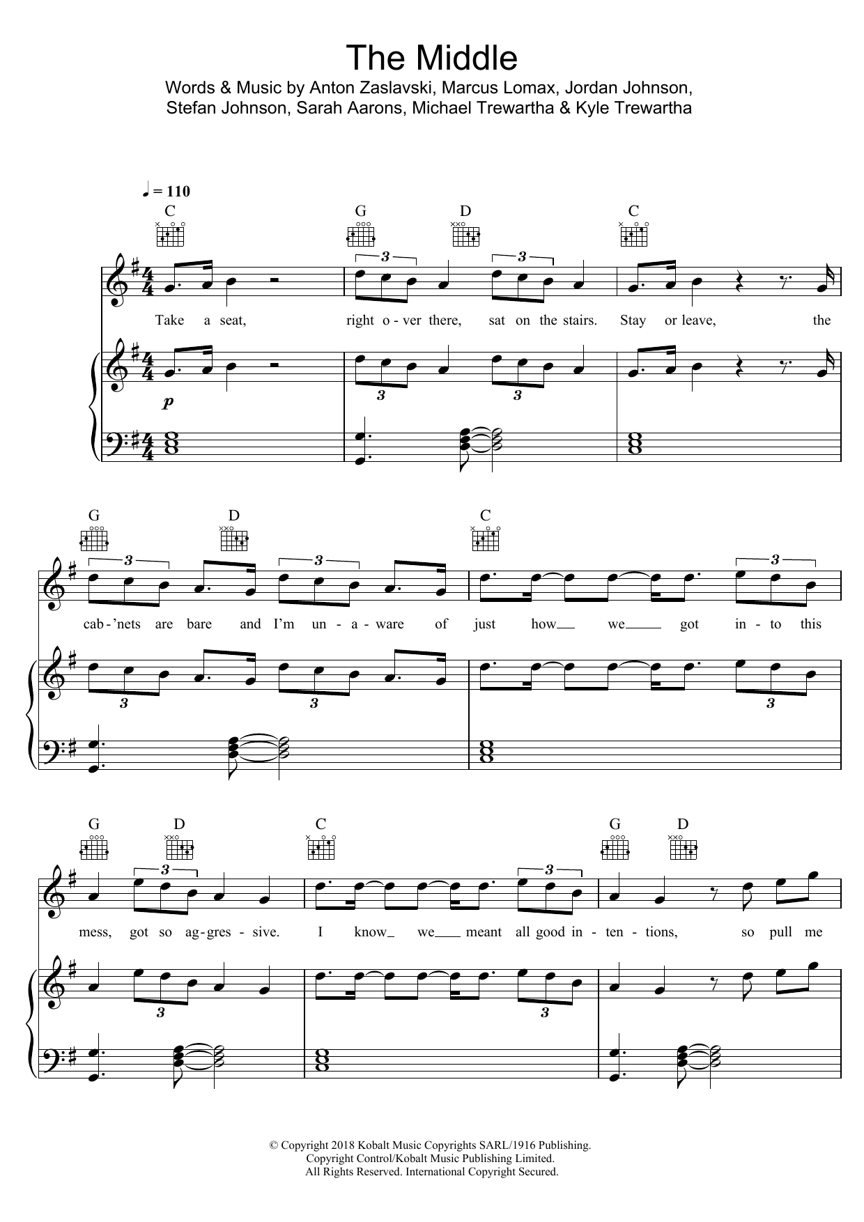 Download or print Zedd, Maren Morris & Grey The Middle sheet music, chords and digital score arranged for Piano, Vocal & Guitar Chords (Right-Hand Melody). This Pop score includes 6 page(s).