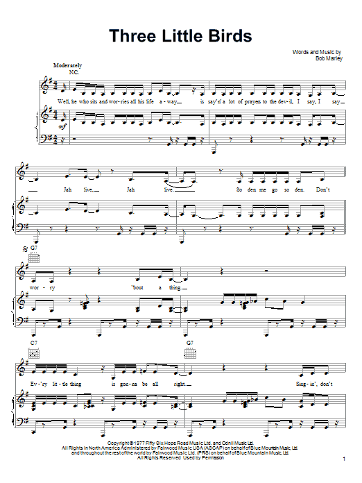 Download or print Ziggy Marley & Sean Paul Three Little Birds sheet music, chords and digital score arranged for Piano, Vocal & Guitar Chords (Right-Hand Melody). This Children score includes 8 page(s).