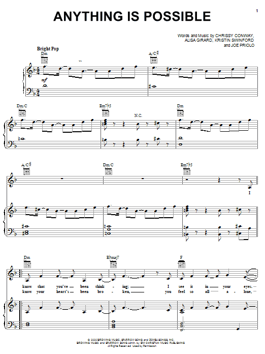 Download or print ZOEgirl Anything Is Possible sheet music, chords and digital score arranged for Piano, Vocal & Guitar Chords (Right-Hand Melody). This Christian score includes 7 page(s).