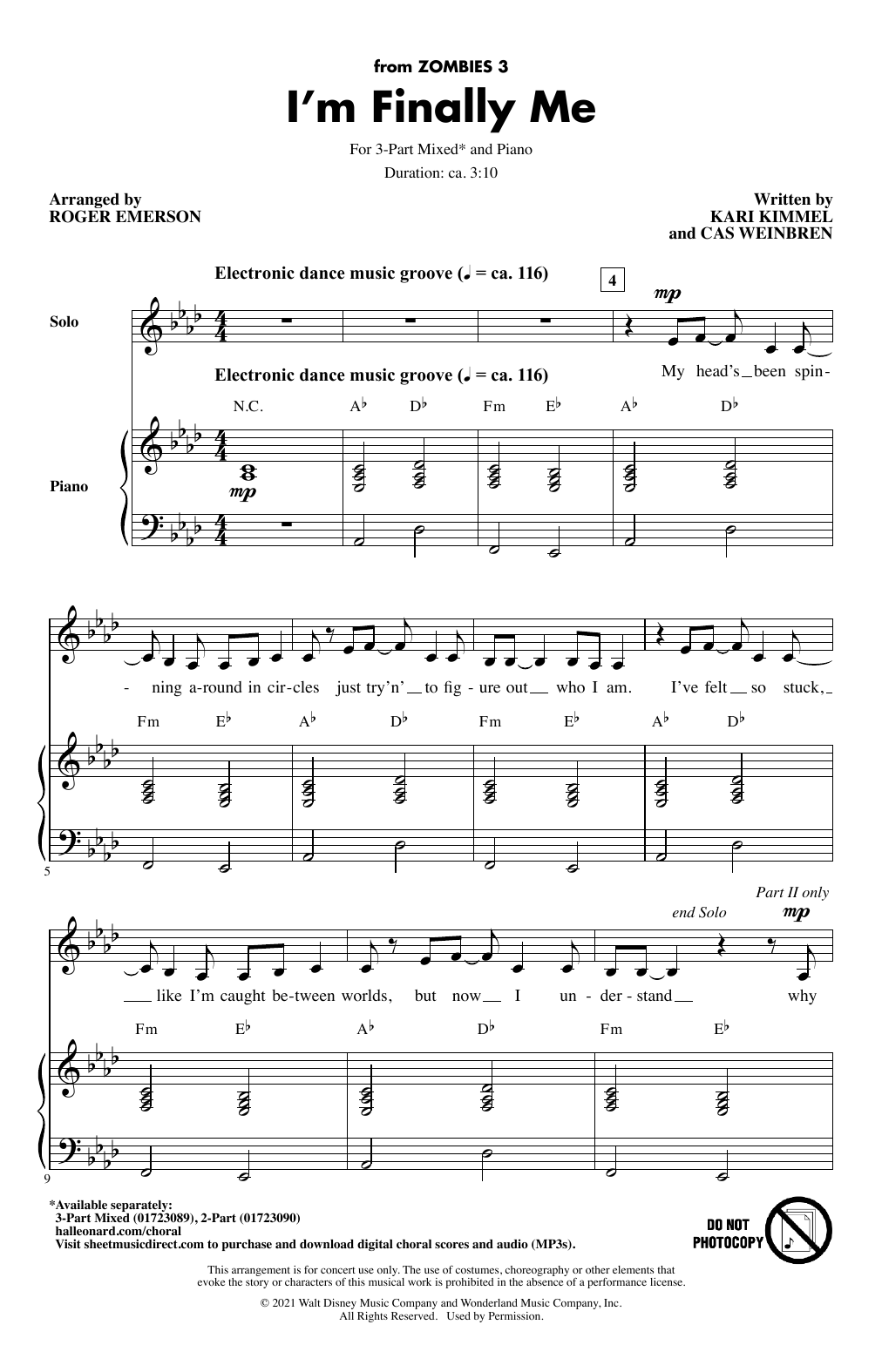 Quick facts I'm Finally Me (from Disney's Zombies 3) (arr. Roger Emerson) about digital sheet music