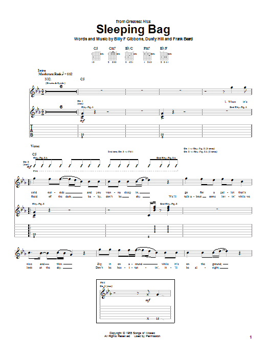Download or print ZZ Top Sleeping Bag sheet music, chords and digital score arranged for Piano, Vocal & Guitar Chords (Right-Hand Melody). This Pop score includes 6 page(s).